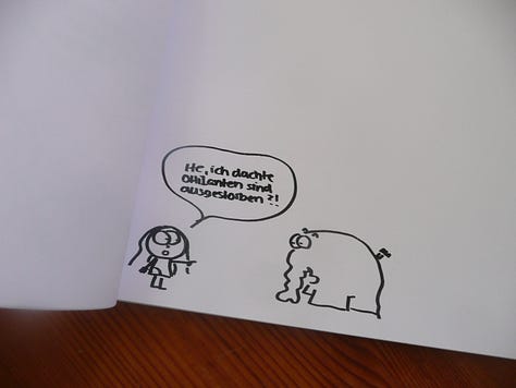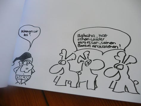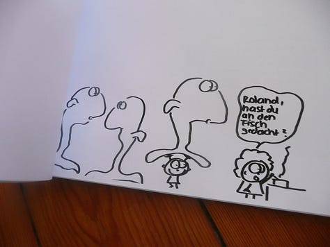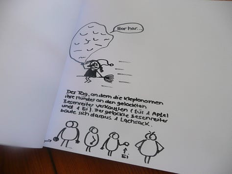 I haven’t found a publisher yet, but I'm open to offers. Next to me laughs a laugh bag. One of the 120 million sold worldwide. The man whose laugh was recorded for those bags sold it for 1,000 Deutschmarks. He was a radio editor at Bavarian Broadcasting. Wouldn’t surprise me if he also worked on the TV series Timm Thaler, in which a boy sells his laughter to the devil – though at least he negotiated for a bit more than 1,000 Deutschmarks.