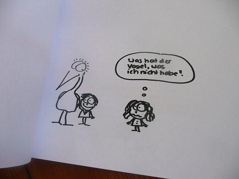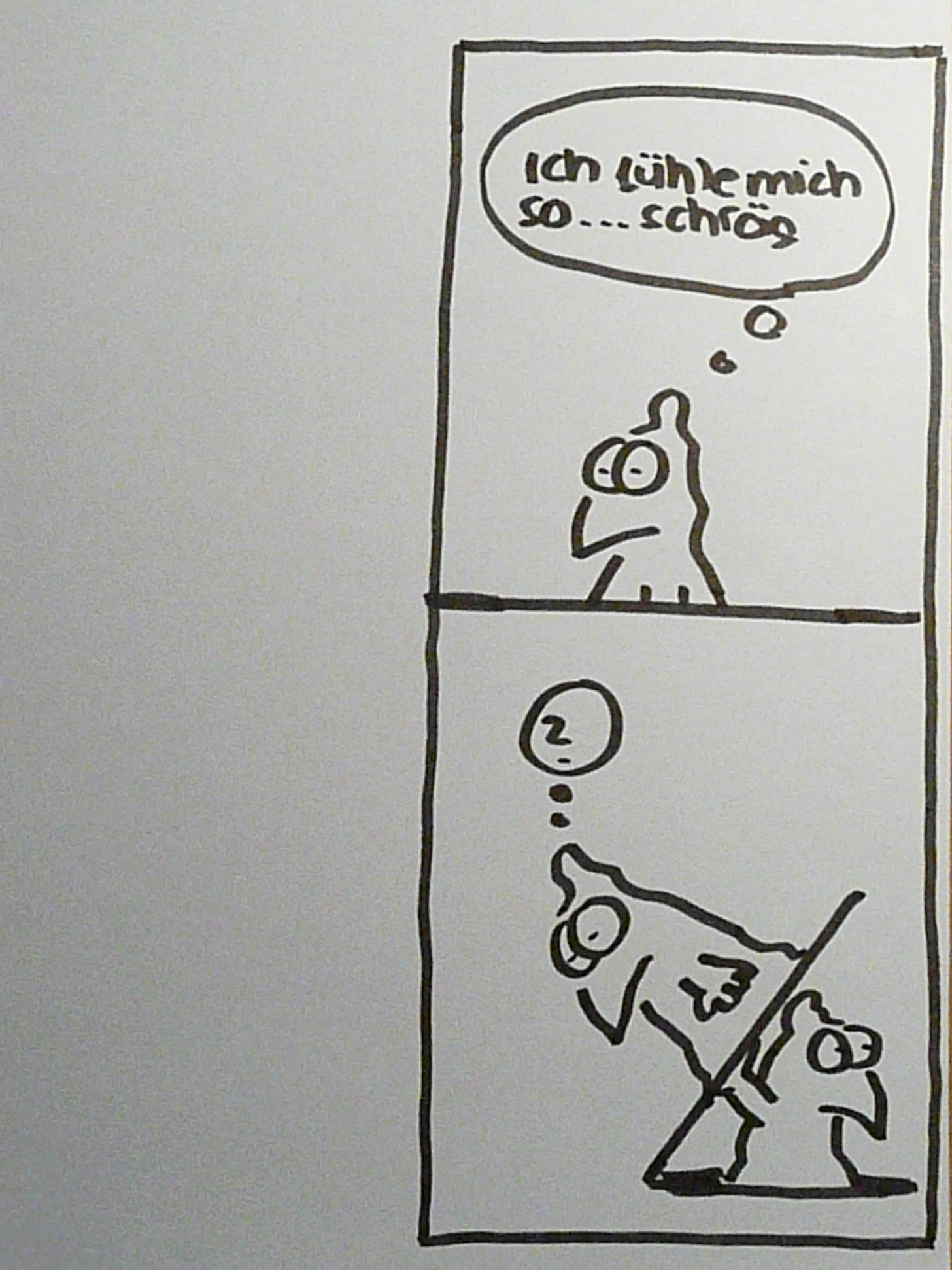 Der Erfinder des Lachsacks ist einer von denen geworden, die viel zu wenig Steuern zahlen und hat irgendwann eine Dame geheiratet, die 46 Jahre jünger als er war und für die er offenbar gegen Ende seines Lebens einen neuen Mann organisieren wollte. Ich lass das mal so stehen. Ich weiß auch nicht, was daraus geworden ist. Ergoogelt habe ich mir aber, dass unserem Millionär darüber hinaus die künstlichen Papageien zu verdanken sind, die früher offenbar in den Filialen der Hühnerbratkette Wienerwald „Heute bleibt die Küche kalt, wir gehen in den Wienerwald“ krächzten. Mit diesem Wissen lasse ich euch nun alleine und wünsche viel Spaß bei der Besichtigung meines ersten Meisterwerks (wer es oft genug behauptet, dem wird irgendwann geglaubt, dieses Stilmittel lässt sich in der heutigen Zeit ja als Trend beobachten).