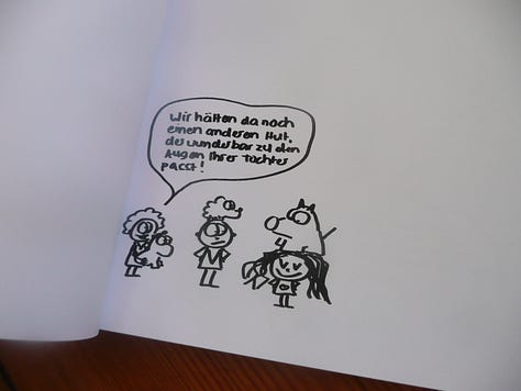With that knowledge, I leave you to it (just scroll down to the German version, the file was too big to post it twice). Enjoy this tour of my first masterpiece (Say it often enough and eventually people believe it – a stylistic device that's currently trending, as you may have noticed.)